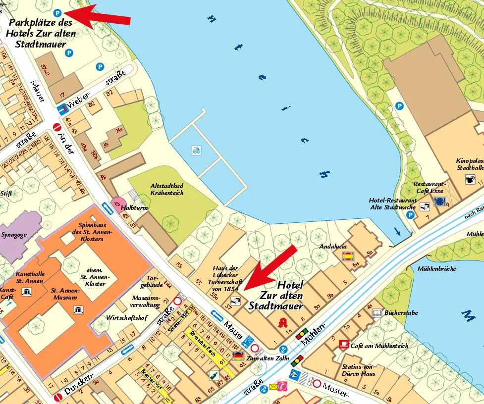 Unser Hotel steht in der historischen Lübecker Altstadt – UNESCO-Welterbe, ruhig gelegen am Krähenteich und nur wenige Gehminuten vom Holstentor, Dom und Rathaus entfernt. Perfekt für Stadterkundungen zu Fuß.