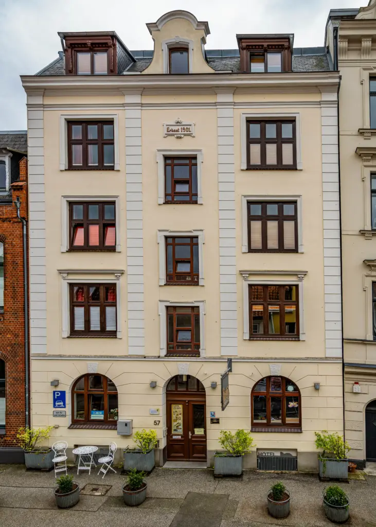 Unser Altstadthotel liegt in einer ruhigen Seitenstraße der Mühlenstraße – mitten in der Lübecker Innenstadt. Hier wohnen Sie in einem stilvollen Altbau von 1901 mit hanseatischem Flair und persönlicher Atmosphäre.